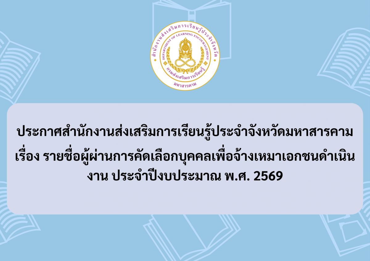 # สำนักงานส่งเสริมการเรียนรู้ประจำจังหวัดมหาสารคาม Mahasarakham Provincial Office of Learning Encouragement