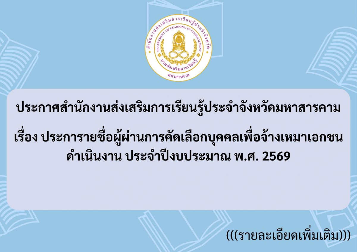 ประกาศสำนักงานส่งเสริมการเรียนรู้ประจำจังหวัดมหาสารคาม